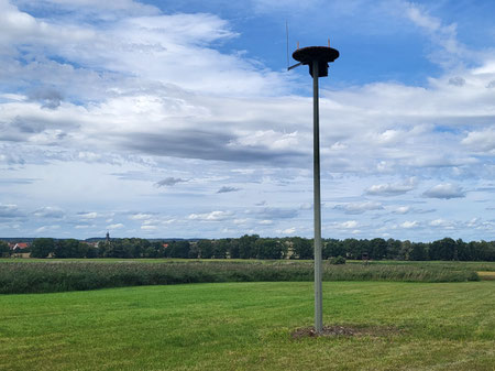 Am 04.09.2025 wurde das neue Nest in den Salzwiesen aufgestellt. Wir bedanken uns recht herzlich bei der OVAG und Hessen Forst für den Erhalt der neuen Fortpflanzungsstätte für Störche und Falken.